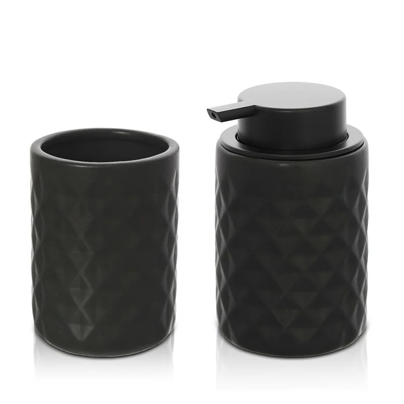 Set accessori bagno nero da appoggio dispenser e portaspazzolini in ceramica Cristal