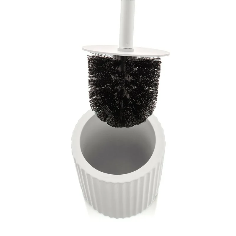 Set bagno completo con dispenser sapone, portaspazzolini e porta scopino con setole nere anti-igieniche