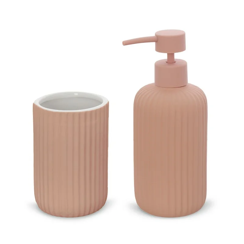 Set accessori bagno 2 pezzi in ceramica rosa soft touch Spring
