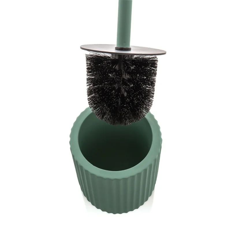 Set bagno completo con dispenser sapone, portaspazzolini e porta scopino con setole nere anti-igieniche