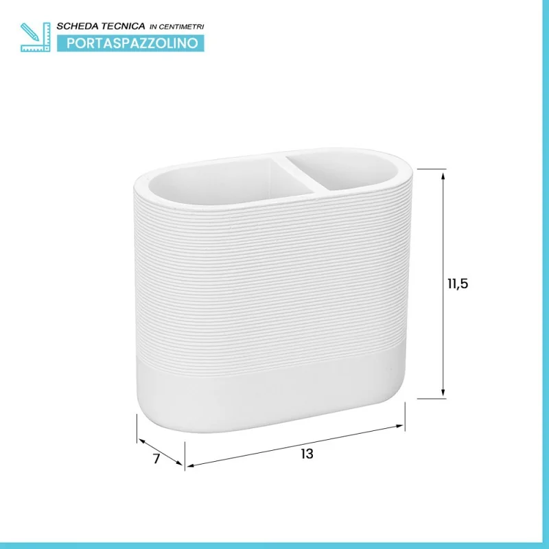 • Dimensioni porta spazzolino: L 13 x P 7 x H 11,5 cm;