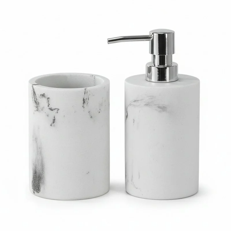 Set accessori bagno effetto marmo 2 pezzi con dispenser e portaspazzolino in resina Ivy