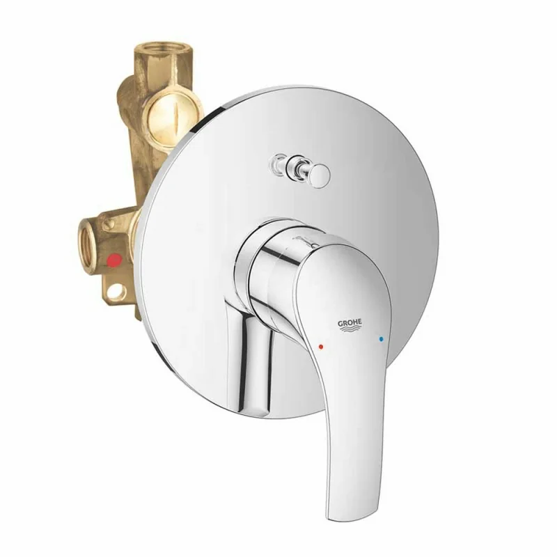 Il set doccia tondo Eurosmart cromato è formato da un soffione tondo in Acciaio da 25 cm, un braccio doccia  tondo lungo 40 cm cromato,un miscelatore per doccia a incasso con deviatore e un kit dccia formato da doccia a singolo getto con presa d'acqua e flessibile.