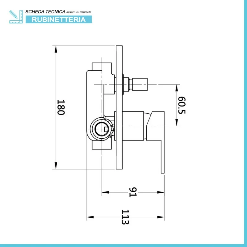 Scheda tecnica braccio doccia da 40 cm e soffione 25x25 cm del set Quatra Caratteristiche tecniche doccetta e presa d'acqua con relativo supporto del set Quatra Scheda tecnica miscelatore doccia a incasso a 2 vie con deviatore del set Quatra Soffione doccia quadrato ultraslim con getti in silicone igienico del set Quatra