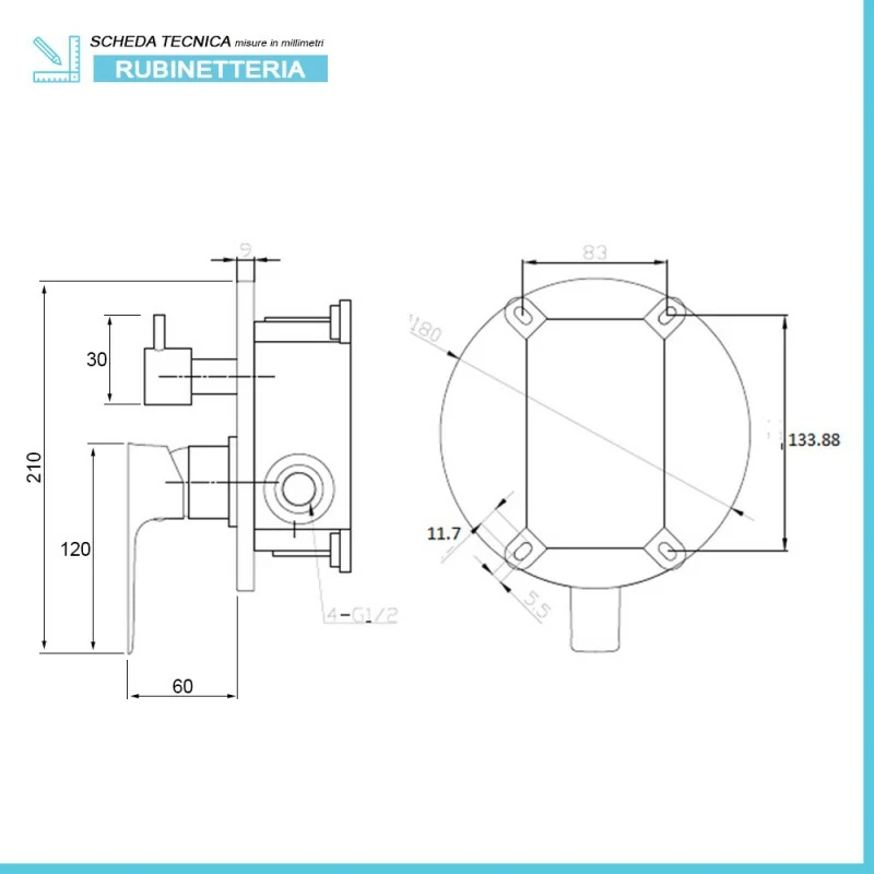 • Dimensione soffione;diamentro 30 x H 4 cm;