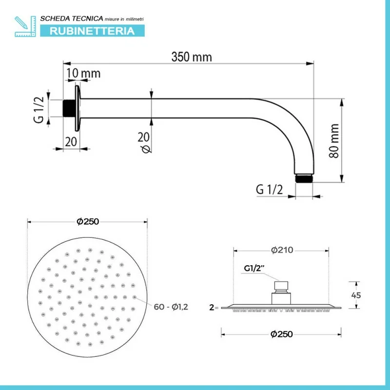 • Dimensione soffione:d 25 cm,spessore 2mm ultra slim;