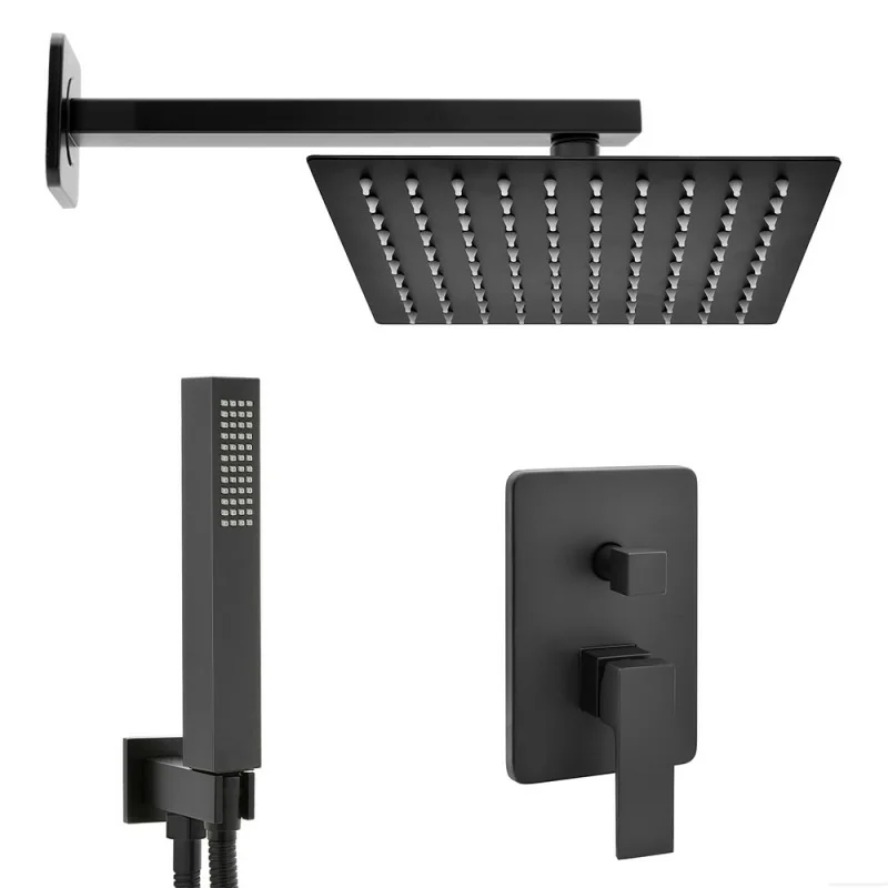 Set doccia incasso Kubo nero opaco con soffione 20 cm e kit doccia
