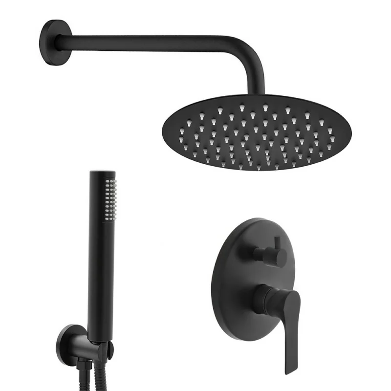 Set doccia incasso nero opaco completo con soffione 25 cm e kit doccino