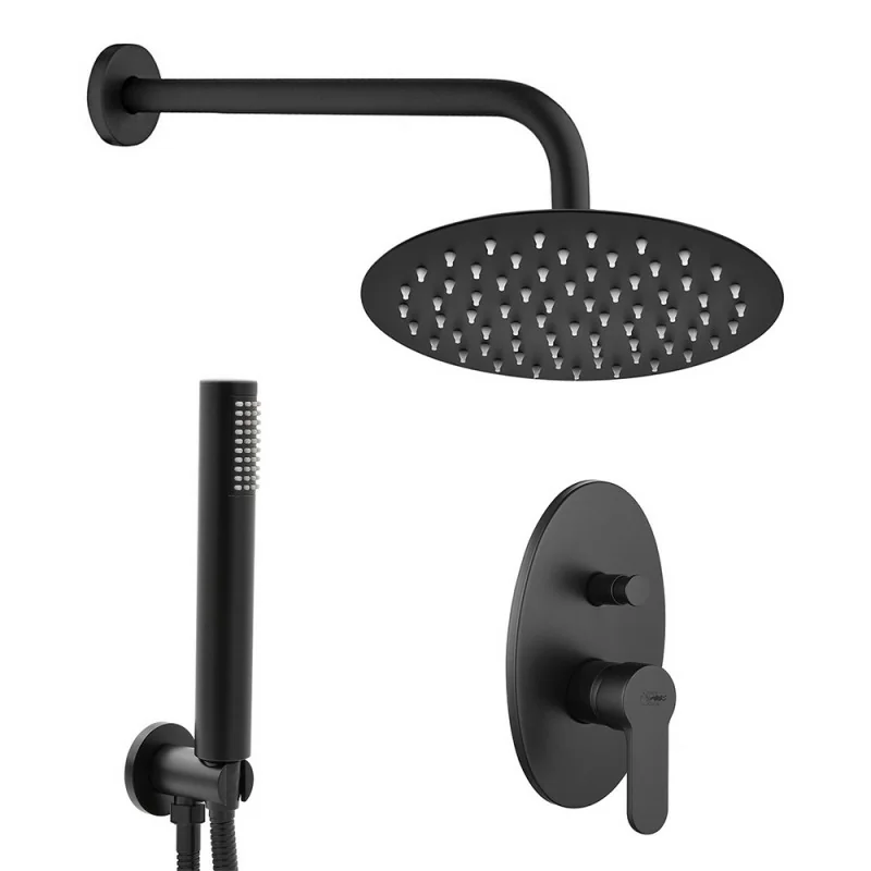 Set doccia incasso Paco nero opaco con soffione 25 cm e kit doccino