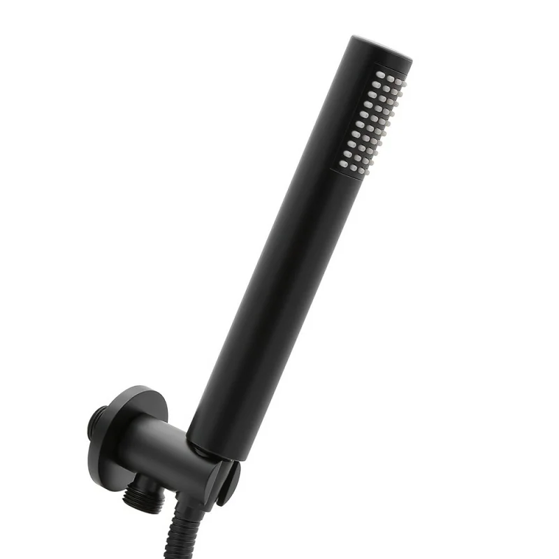 Il set doccia nero opaco è composto da braccio doccia tondo in acciaio,soffione tondo ultra piatto in acciaio inox,e kit doccino in ABS con supporto a muro completo di presa acqua,doccino monogetto e flessibile in PVC da 150 cm.