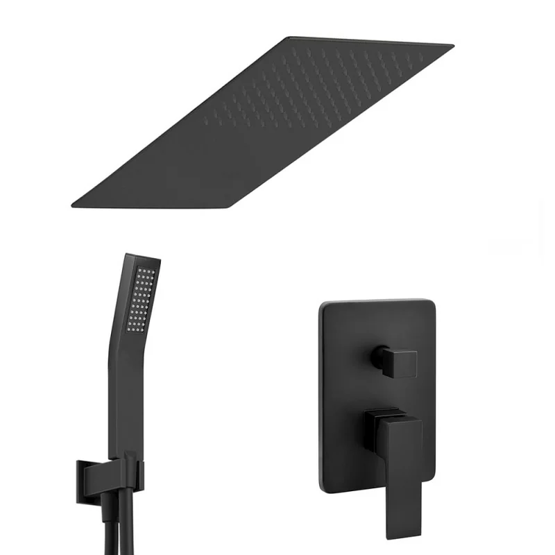 Il set include:kit doccia con presa acqua,supporto,laccio in PVC e doccino in ottone;soffione a sbalzo in acciaio inossidabile con finitura nero opaco,una soluzione di tendenza che eroga l’acqua con un gradevole effetto pioggia. L’assenza del braccio consente l’installazione a sbalzo direttamente a muro,senza la necessità di ulteriori supporti,la confezione include il kit di fissaggio.