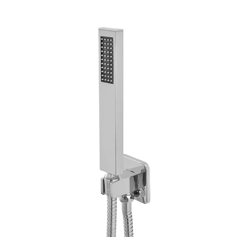 Il miscelatore doccia incasso impiegato è a due vie,collegato al soffione quadrato ultrapiatto con ugelli anticalcare e al kit doccia con presa d’acqua integrata,doccino e flessibile in acciaio da 150 cm.