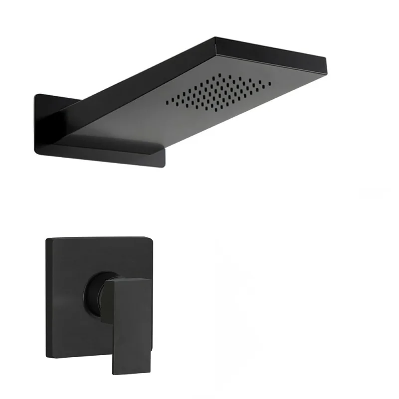 Il set include il miscelatore doccia incasso,realizzato in ottone nero opaco con sottile leva monocomando,ideale per regolare con facilità la portata e la temperatura d’acqua. Completa il set il soffione doccia in acciaio inox, installazione a sbalzo direttamente a muro ed erogazione d’acqua a effetto pioggia.