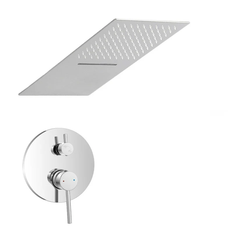 Soluzione doccia completa di miscelatore con deviatore e soffione a parete con cascata ed effetto pioggia