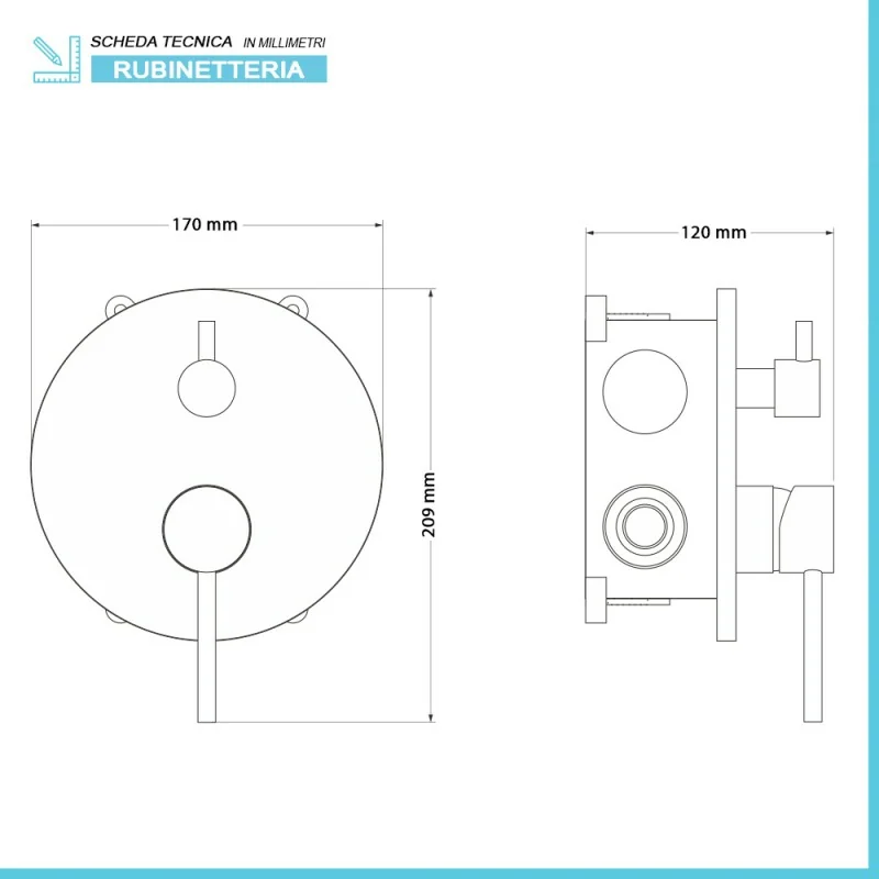 • Dimensioni miscelatore:Ø 17 c H 20,9 x p 12 cm;