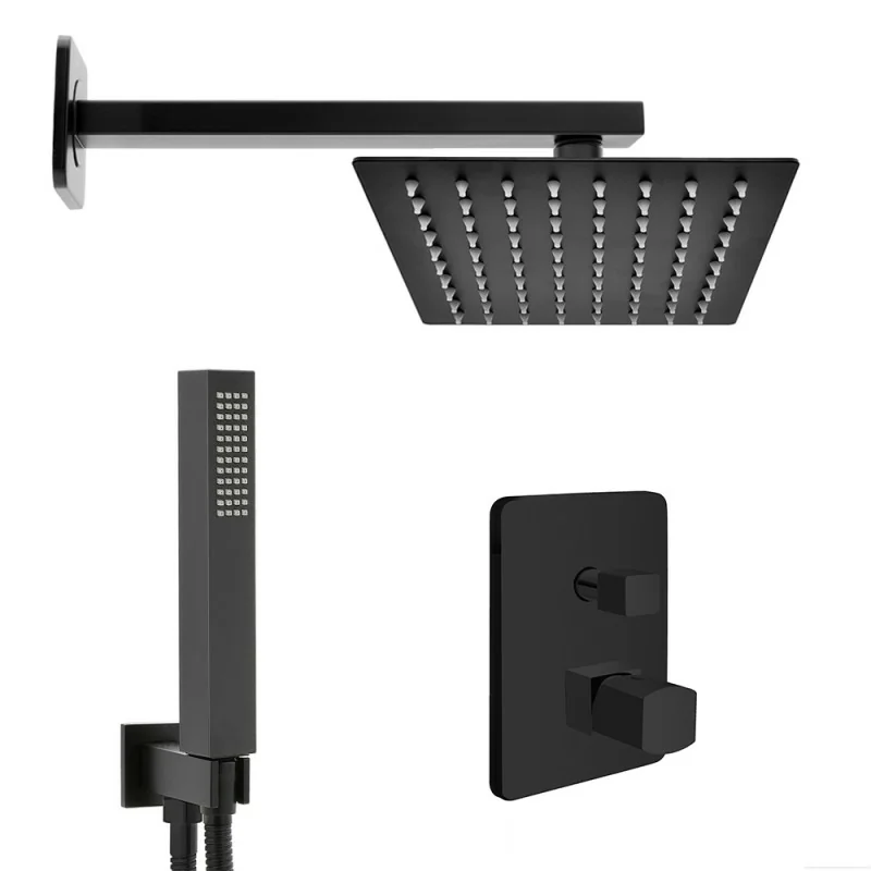 Kit doccia incasso con soffione 30x20 e set completo nero opaco Lotus
