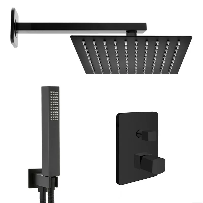 Kit doccia da incasso con soffione 20 cm e set completo nero opaco Lotus