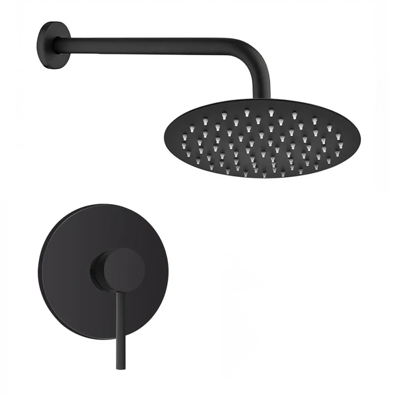 Set doccia tondo York nero opaco con miscelatore, braccio 35,5 cm, soffione 25cm