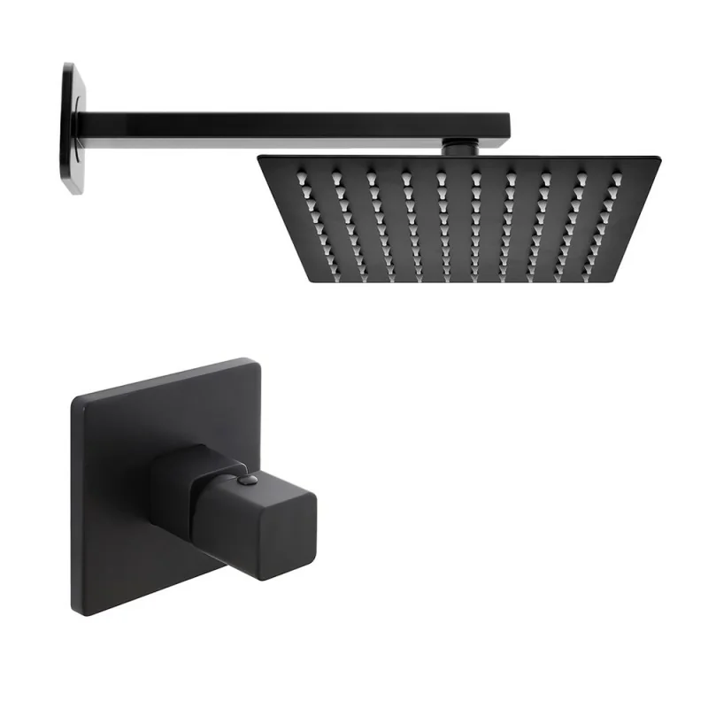 Set doccia quadrato Lotus nero opaco con miscelatore, braccio 33 cm, soffione 25,5cm   Un abbraccio di benessere che rigenera corpo e mente...