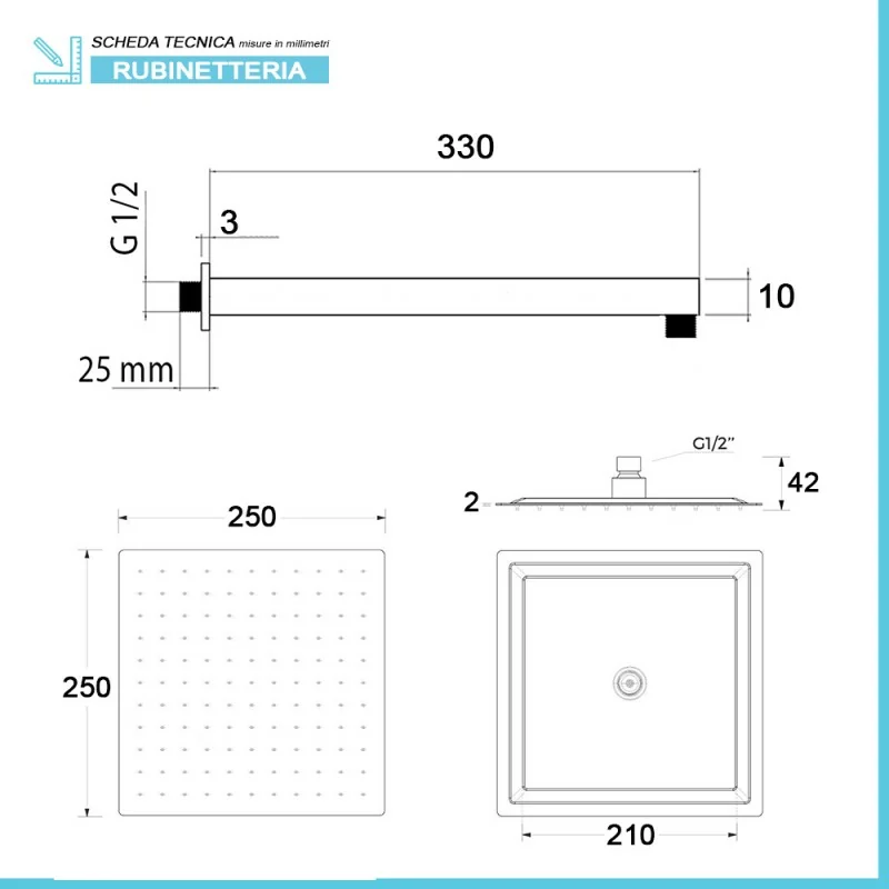 • Dimensioni miscelatore doccia: L 11 cm, spessore 7cm;