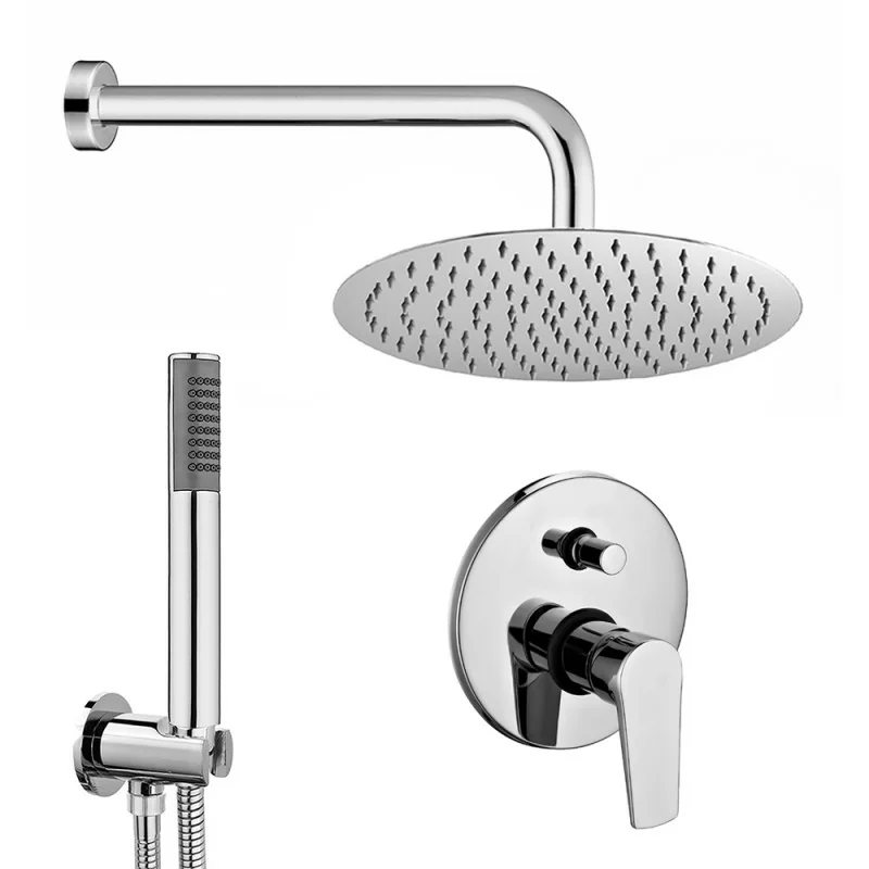 Kit doccia tondo cromo braccio 35 cm 2 vie soffione 20 cm e kit doccino inclusi linea Erika