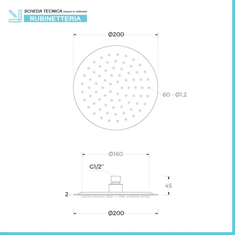 • Dimensioni soffione anticalcare: 20 cm diametro;