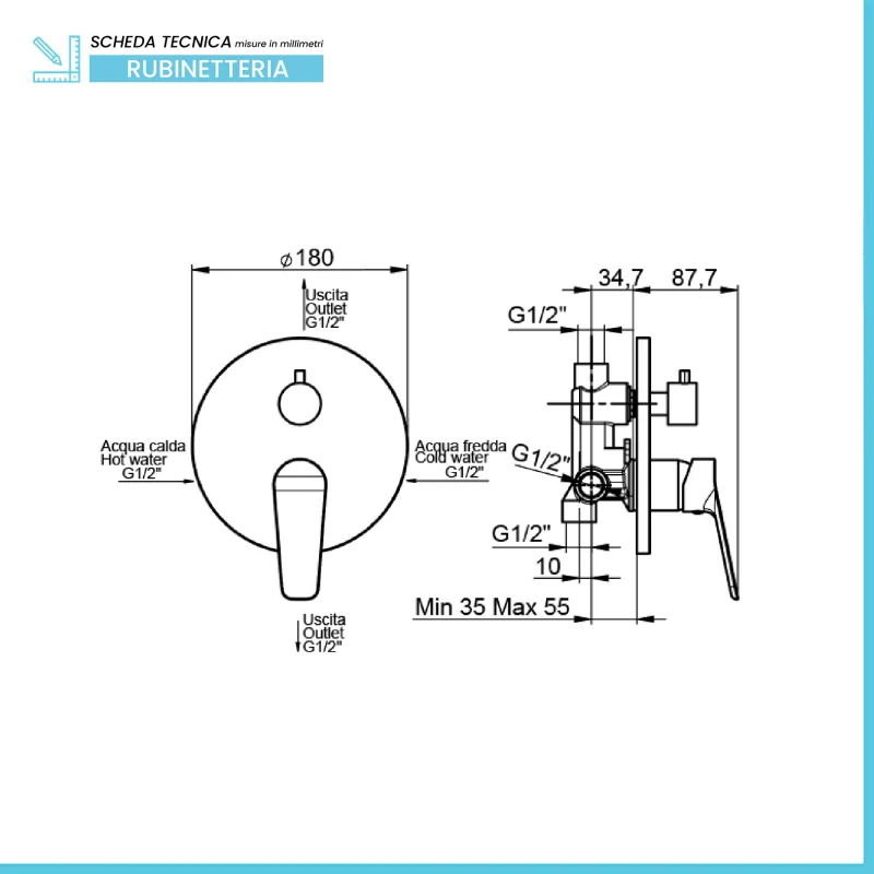 • Dimensioni miscelatore doccia: diametro 11,5 cm;