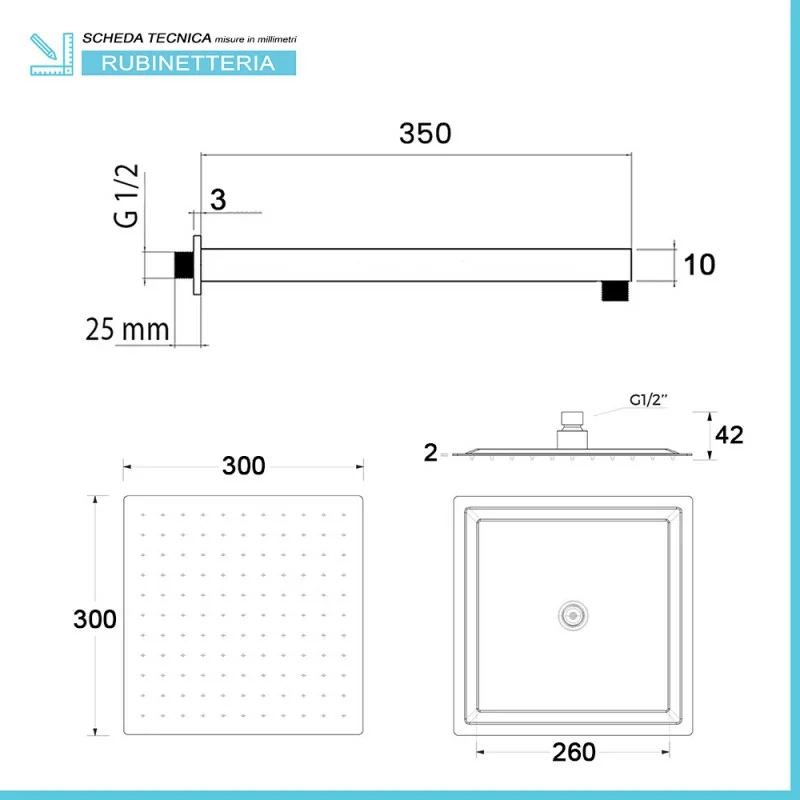 • Dimensioni soffione: L30xL30xH 4 cm;