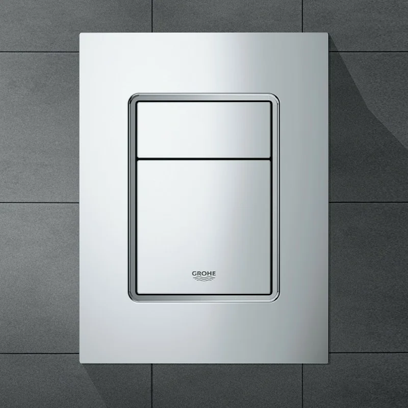 La placca di azionamento Grohe Skate è contraddistinta dalla minuziosa cura dei dettagli e dal particolare sistema di montaggio senza viti. Il disegno dei pulsanti a losanga riprende uno stile innovativo e contemporaneo,mentre il doppio tasto Dual Flush e Start & Stop di questa placca di azionamento è perfettamente compatibile con il doppio sistema di scarico presente sulle cassette da incasso Grohe con orientamento verticale da 80mm.