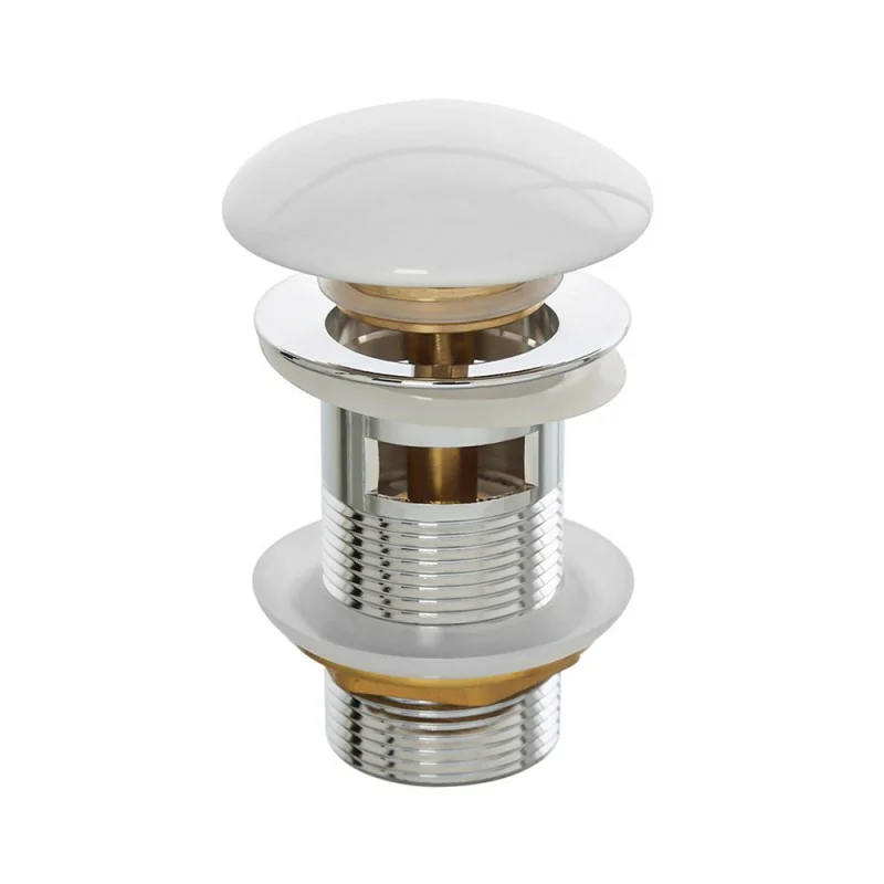 Piletta di scarico universale click clack con troppopieno tappo in ceramica bianco