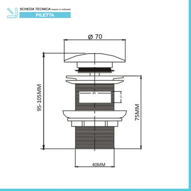 Piletta clic clac con troppo pieno e tappo in ceramica bianca lucida Scheda tecnica piletta clic clac con troppo pieno e tappo in ceramica bianca lucida Piletta di scarico clic clac con troppo pieno e tappo in ceramica bianca lucida Piletta per lavabo clic clac con troppo pieno e tappo bianco lucido Piletta lavandino clic clac con troppo pieno e tappo in ceramica bianca lucida