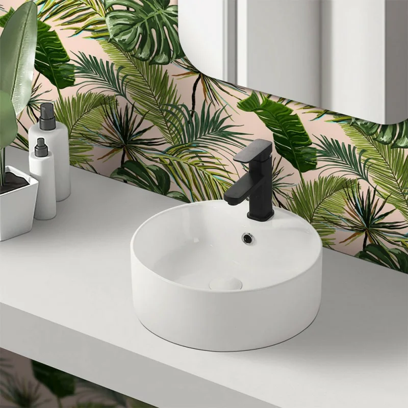 Piletta clic clac con troppo pieno e tappo in ceramica bianca lucida
