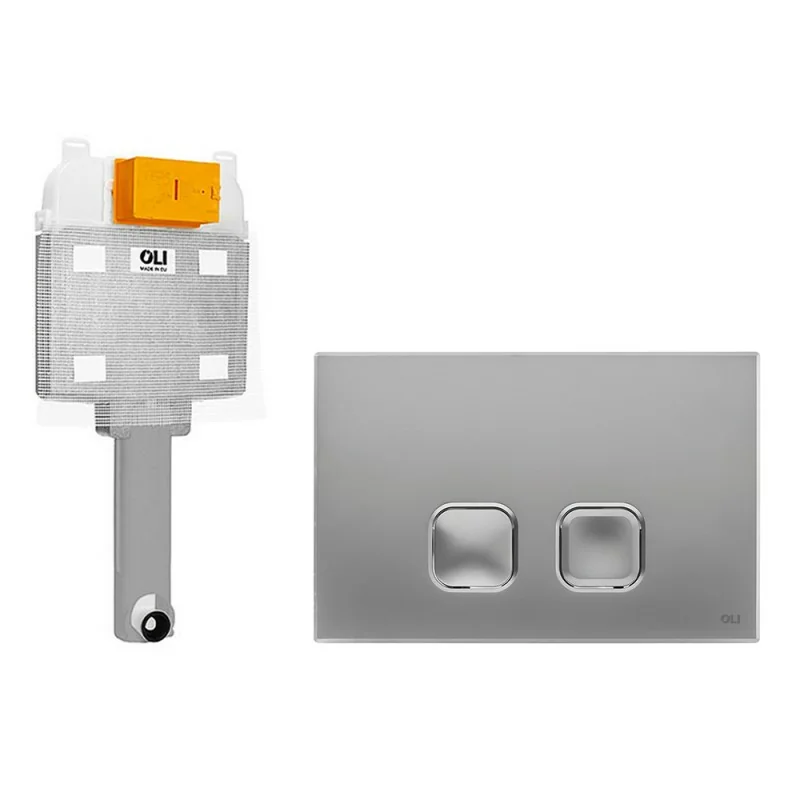 Cassetta da incasso OLI74 Plus doppio scarico con placca wc cromo satinata Scheda tecnica placca di comando wc Oli Plain in abs cromo satinato con doppio pulsante di scarico Scheda tecnica cassetta incassata wc OLI74 Plus con sistema a doppio scarico 6/3 litri Placca cassetta wc Oli Plain in abs cromo satinato con doppio pulsante di scarico Cassetta di risciacquo da incasso OLI74 Plus con sistema a doppio scarico 6/3 litri