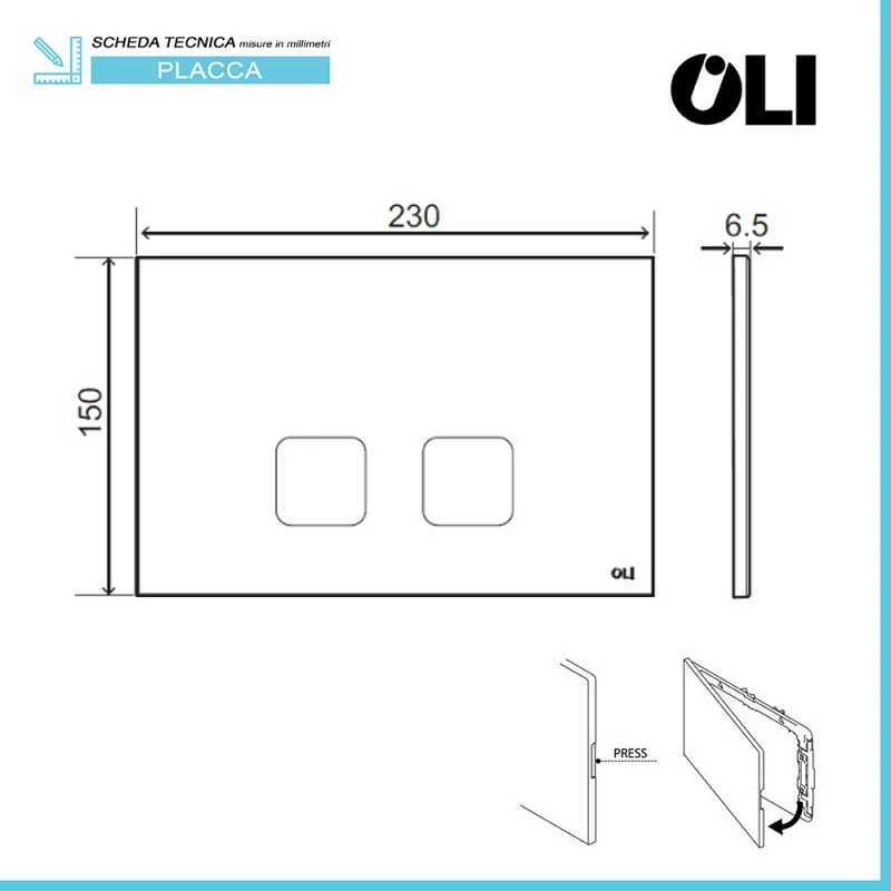 Cassetta wc incasso OLI74 Plus con doppio scarico e placca di comando bianca Scheda tecnica placca cassetta wc Oli Plain in abs bianco Scheda tecnica cassetta scarico wc incasso OLI74 Plus con sistema a doppio scarico 6/3 litri Placchetta scarico wc Oli Plain in abs bianco con doppio pulsante Cassetta incassata wc OLI74 Plus con sistema a doppio scarico 6/3 litri