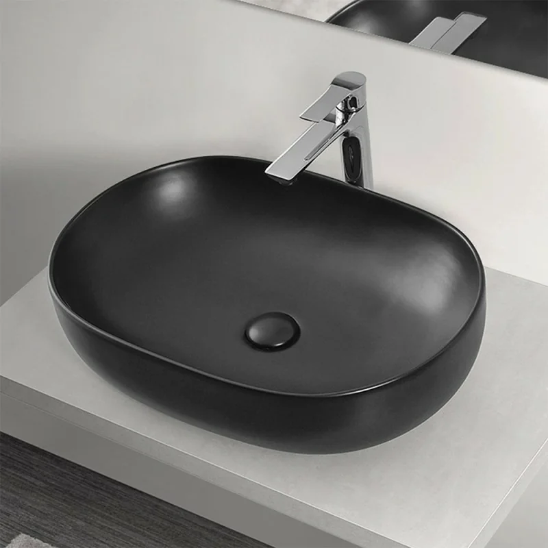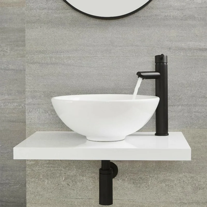 Sifone lavabo a canna tonda nero opaco completo di piletta click clack