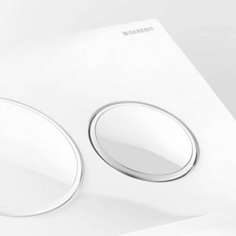 La serie di piastre di azionamento Geberit Sigma 20 completa l’installazione delle cassette ad incasso serie Sigma ed Omega. È realizzata in materiale sintetico ed ha due pulsanti in grado di azionare due flussi d’acqua con portata diversa.