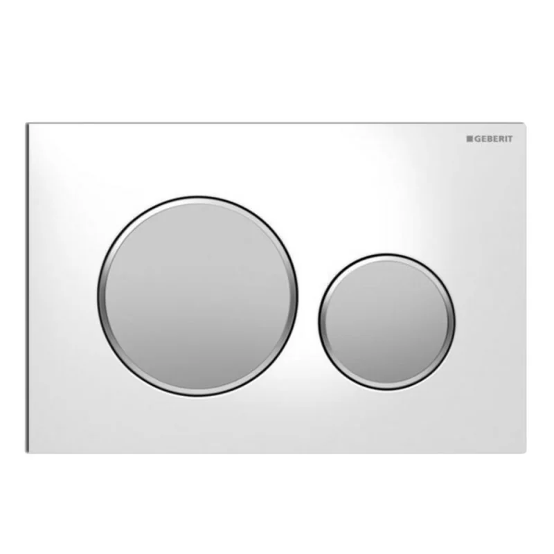 La serie di piastre di azionamento Geberit Sigma 20 completa l’installazione delle cassette ad incasso serie Sigma ed Omega. È realizzata in materiale sintetico ed ha due pulsanti in grado di azionare due flussi d’acqua con portata diversa.