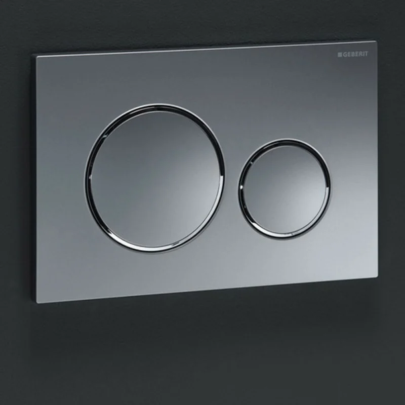 La serie di piastre di azionamento Geberit Sigma 20 completa l’installazione delle cassette ad incasso serie Sigma ed Omega. È realizzata in materiale sintetico ed ha due pulsanti in grado di azionare due flussi d’acqua con portata diversa.
