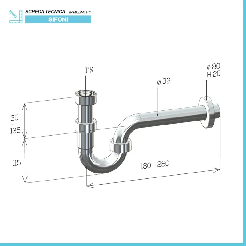 Sifone di scarico per lavabo ad S universale in abs cromato Scheda Tecnica Sifone di scarico per lavabo ad S universale in abs cromato Foto Sifone di scarico per lavabo ad S universale in abs cromato