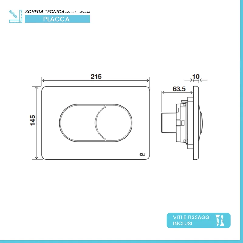 Placca di comando Oli Salina Dual cromo lucido 21,5 cm in ABS con doppio scarico Scheda tecnica - Placca di comando Oli Salina Dual cromo lucido 21,5 cm in ABS con doppio scarico