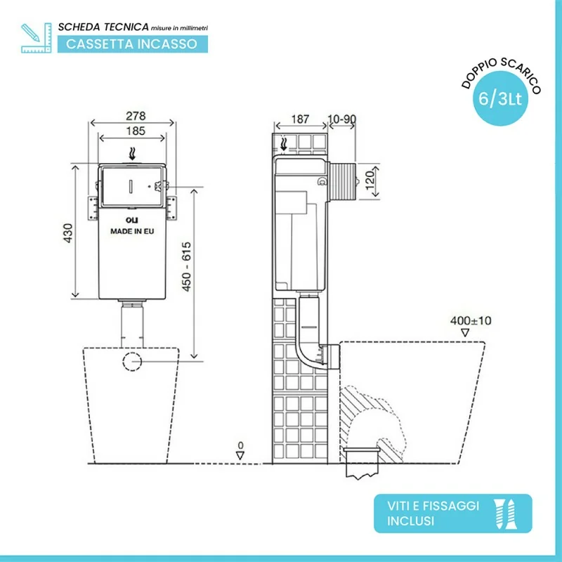 Cassetta wc incasso con doppio scarico caratteristiche tecniche: