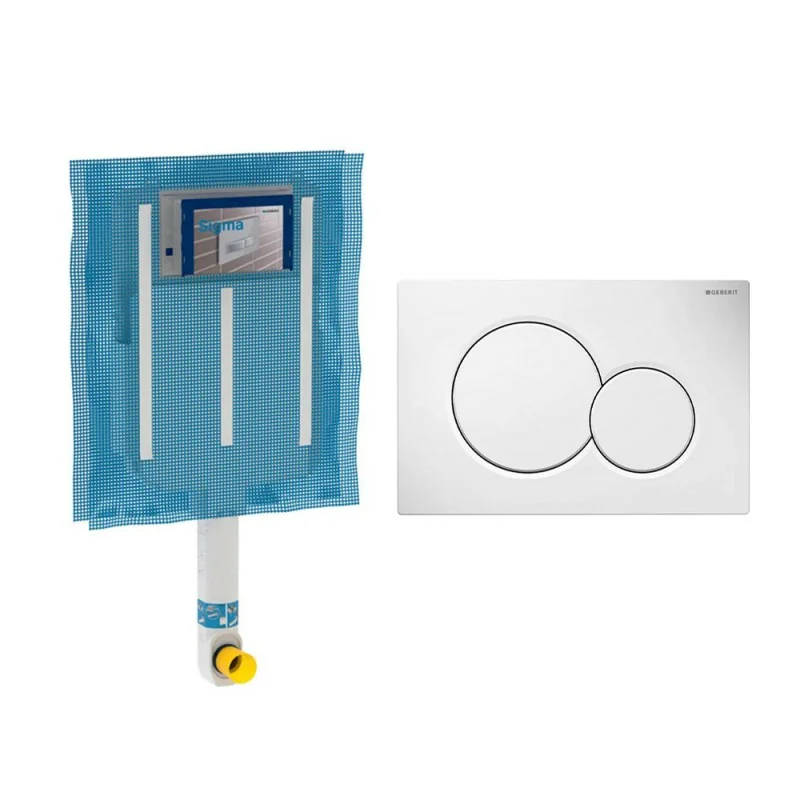 Cassetta wc incasso Geberit doppio scarico con placca di comando bianca