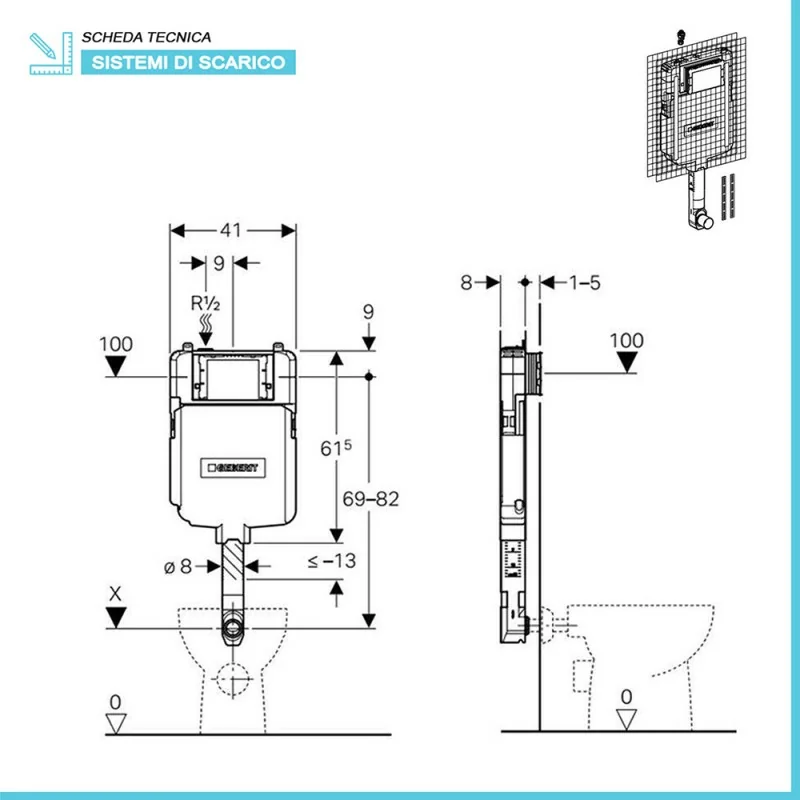 Cassetta scarico Geberit wc incasso caratteristiche tecniche: