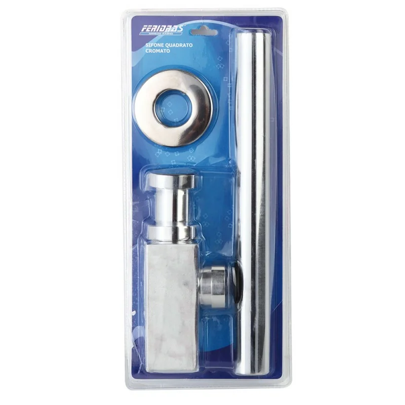 Sifone universale per lavandino con colonna quadrata. I sifoni sono realizzati con materiali di alta qualità e grazie alla loro ispezionabilità garantiscono il massimo dell'igiene insieme ad una notevole durata. La finitura cromata lucida li rende esteticamente gradevoli e facilmente impiegabili in ogni tipo di arredo bagno,sia con montaggio a vista sia montandoli dietro la colonna del lavabo.