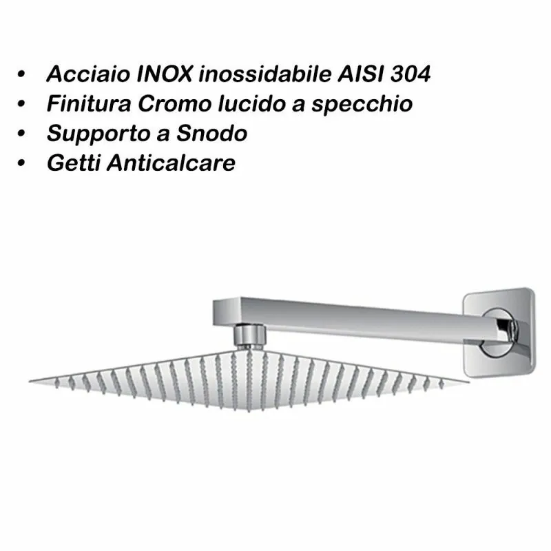 Soffione doccia dalla forma quadrata 25x25 cm in acciaio inox
