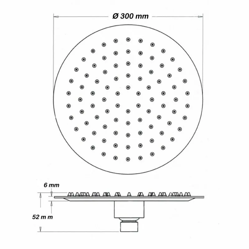 • Spessore soffione:2 mm;
