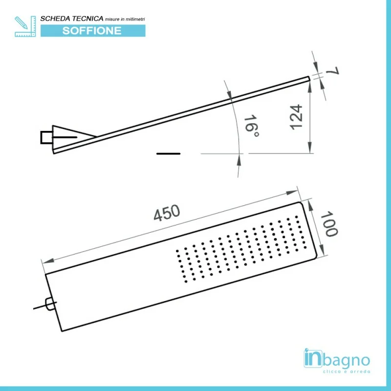 • Tipologia:soffione doccia a sbalzo rispetto alla parete con inclinazione di 16°