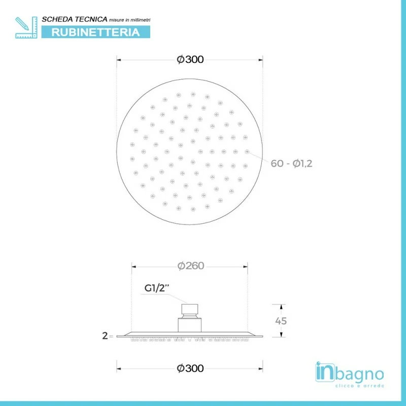Soffione doccia tondo slim diametro 30 cm in acciaio cromato