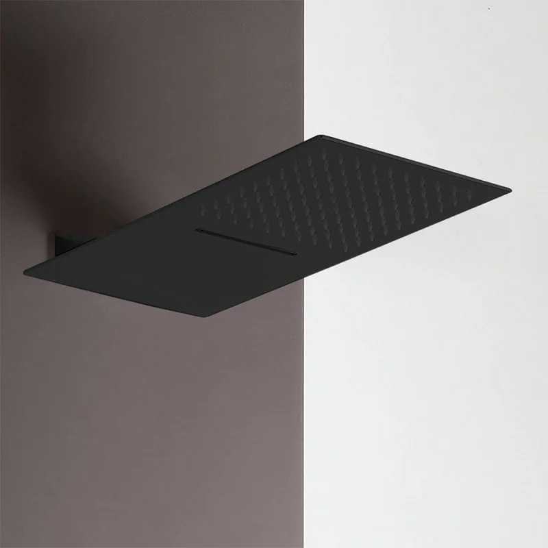 Soffione doccia a sbalzo slim 25x52 cm nero opaco in acciaio inox con cascata