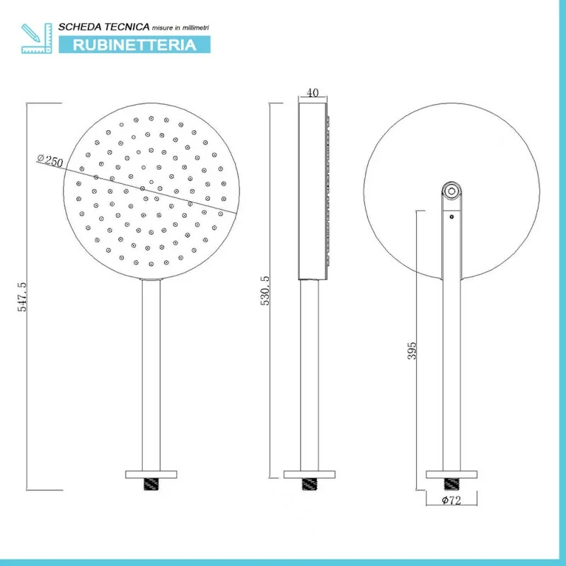 • Dimensioni soffione:diametro 25 cm,spessore 4 cm;